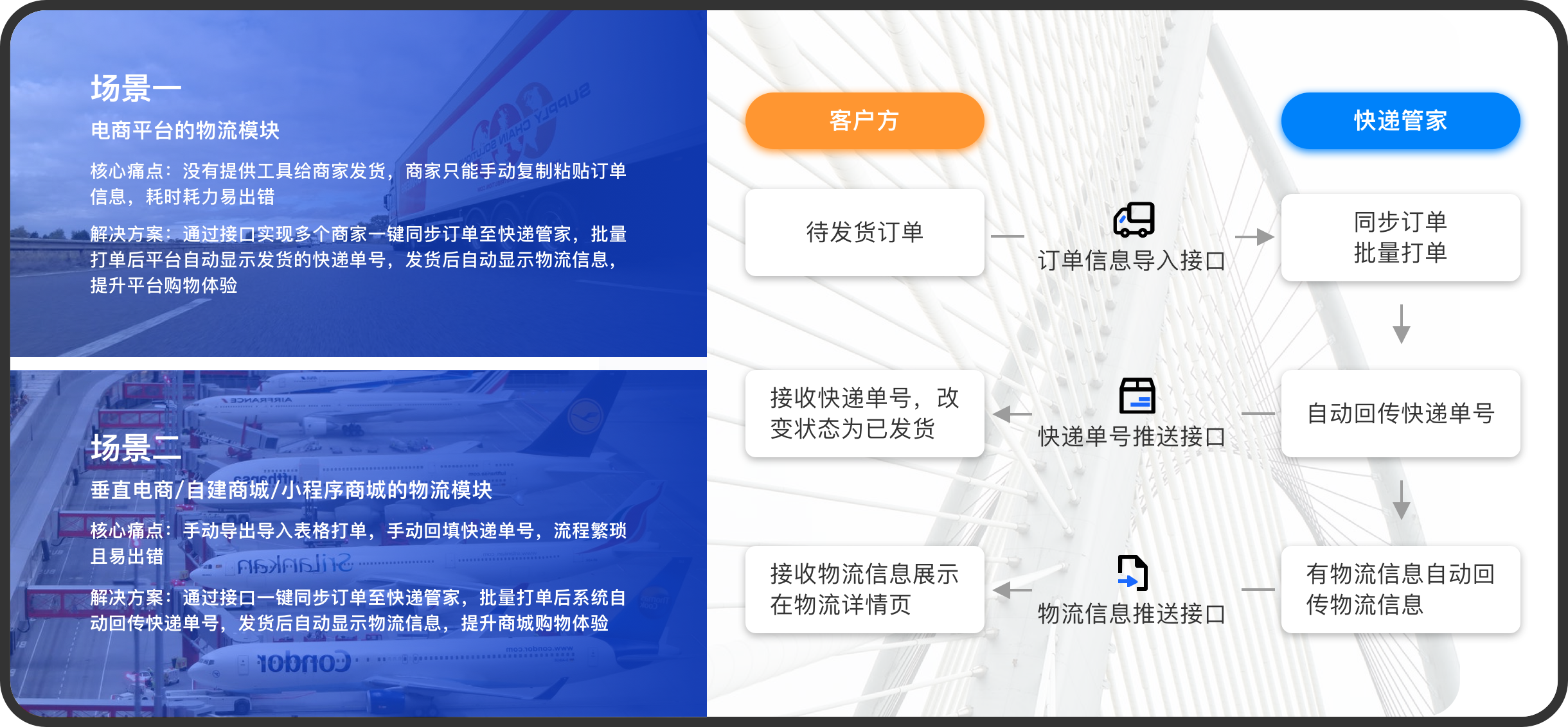 有開發(fā)能力,希望提升自有平臺發(fā)貨效率的用戶,建議對接快遞100快遞管家開放平臺